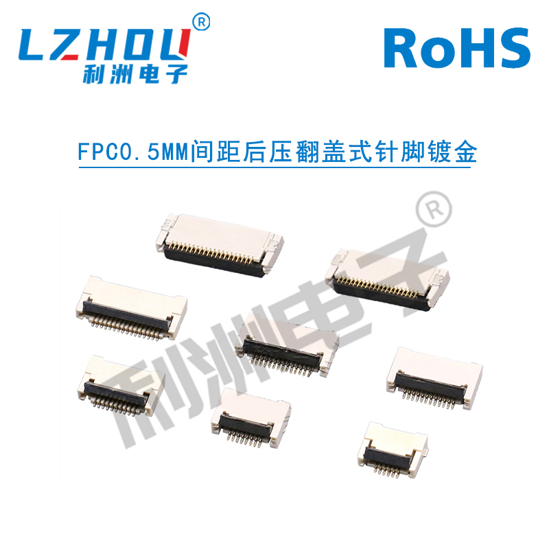 FPC0.5mm间距后压翻盖式针脚镀金