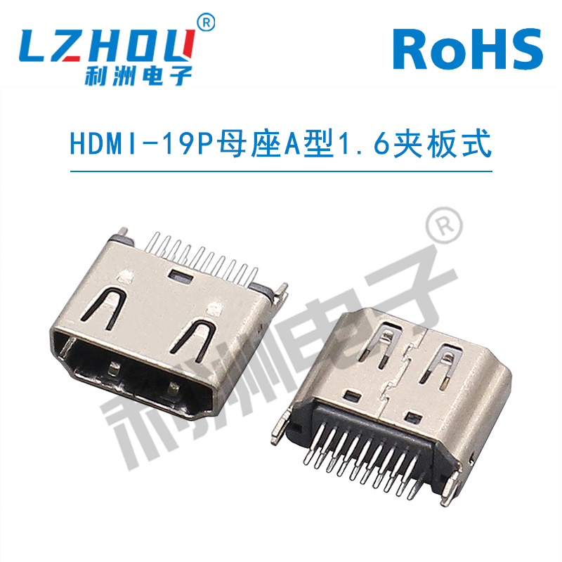 HDMI-19P母座A型1.6夹板式