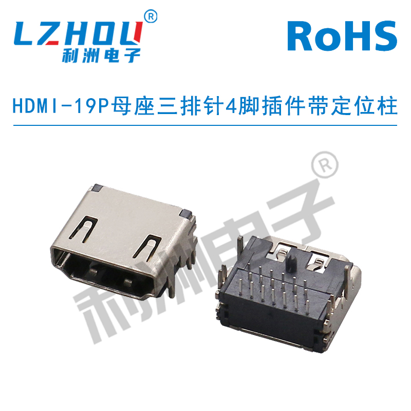 HDMI-19P母座三排针4脚插件带定位柱