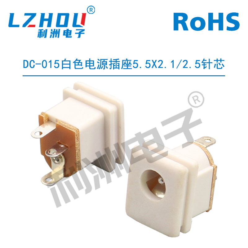 DC-015白色电源插座5.5 2.1 2.5针芯