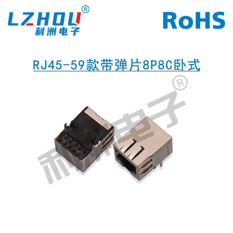 RJ45网络插座59款8P8C带弹片无灯21长卧式弯针RJ45网口母座连接器