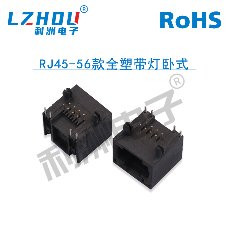 RJ45网络插座56-8P8C带灯全塑卧式RJ45网口连接器水晶头RJ母座