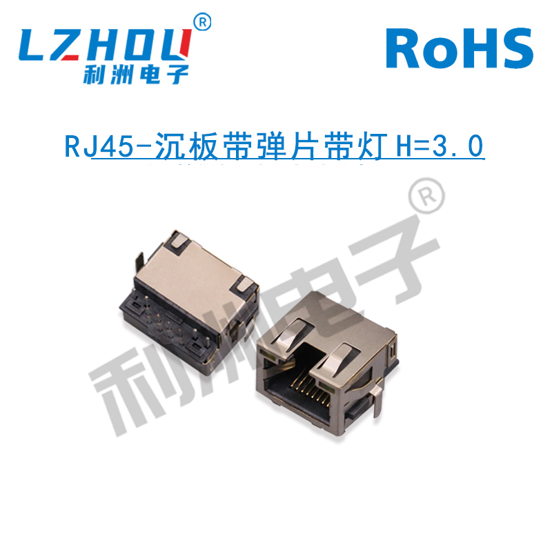 RJ45-沉板带弹片带灯H=3.0