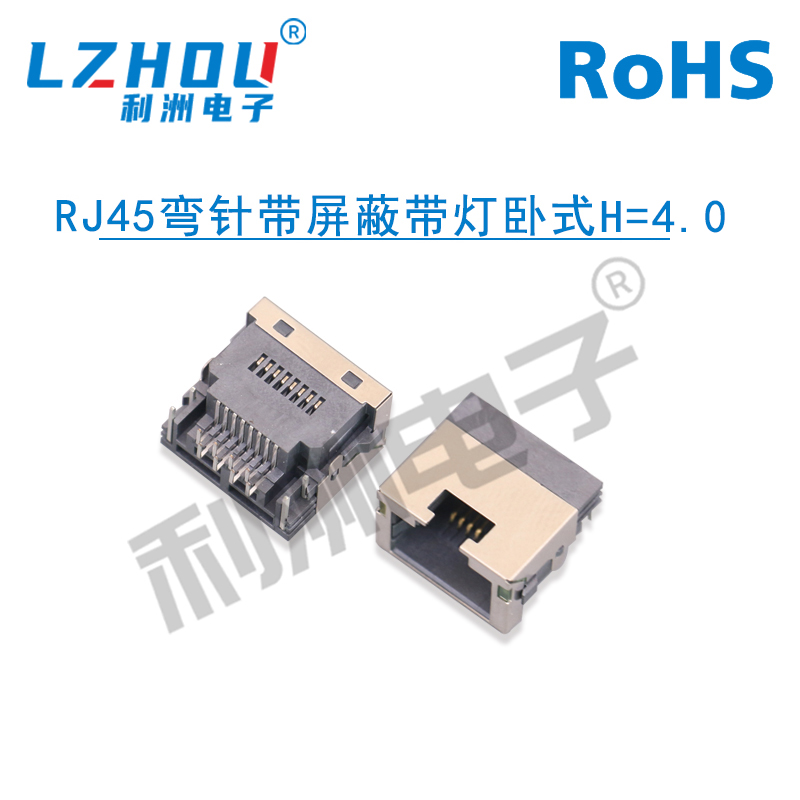 RJ45弯针带屏蔽带灯卧式H=4.0