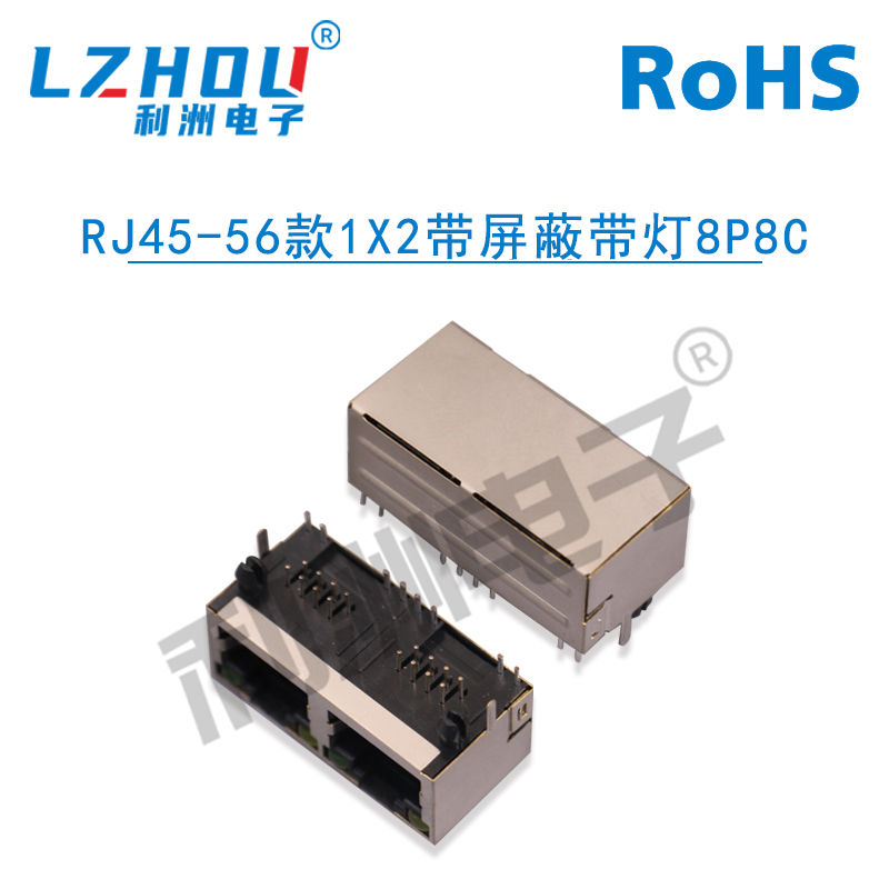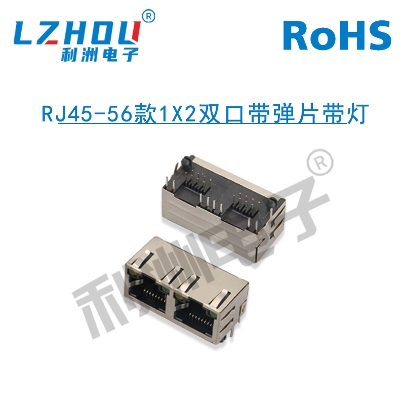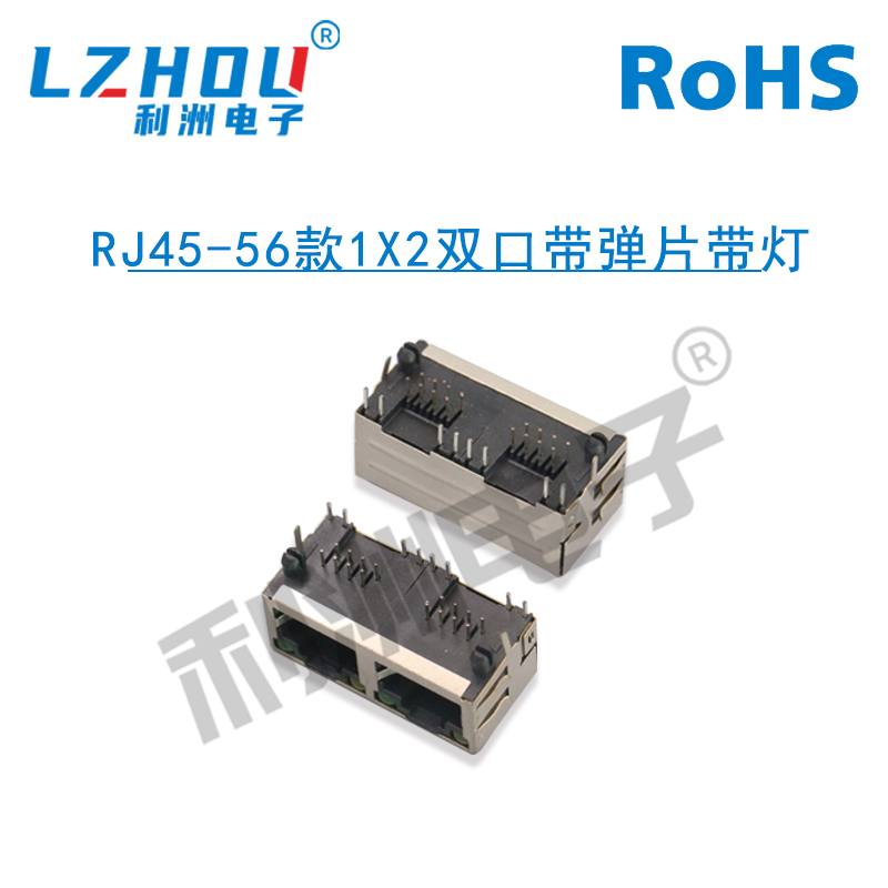 RJ45-56款1X2双口带弹片带灯