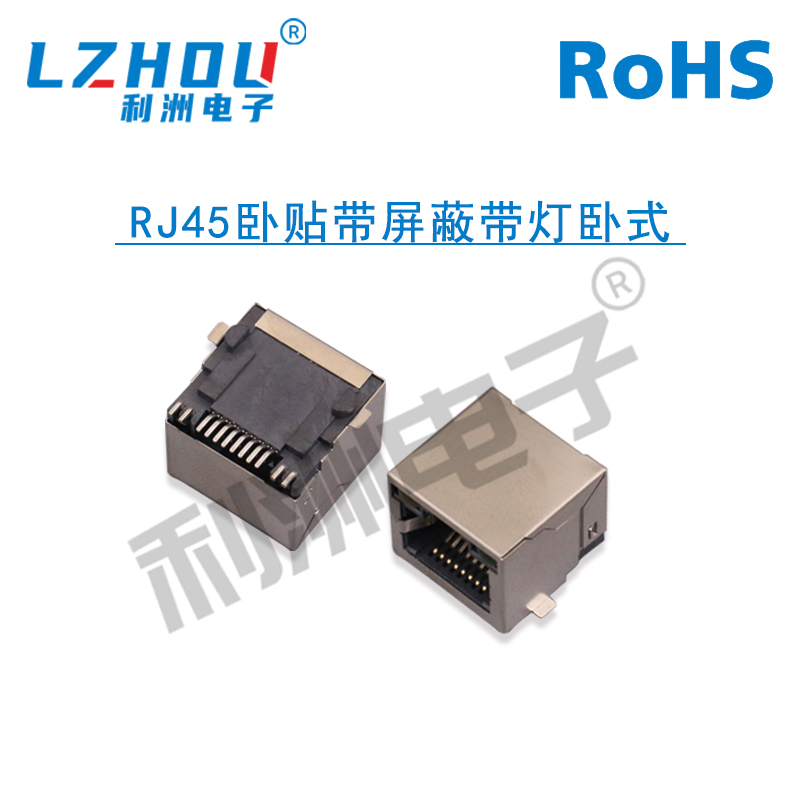 RJ45卧贴带屏蔽带灯卧式