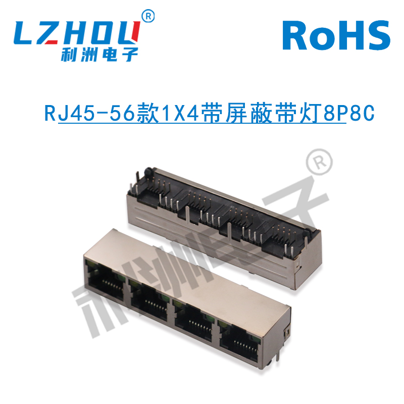 RJ45-56款1X4带屏蔽带灯8P8C