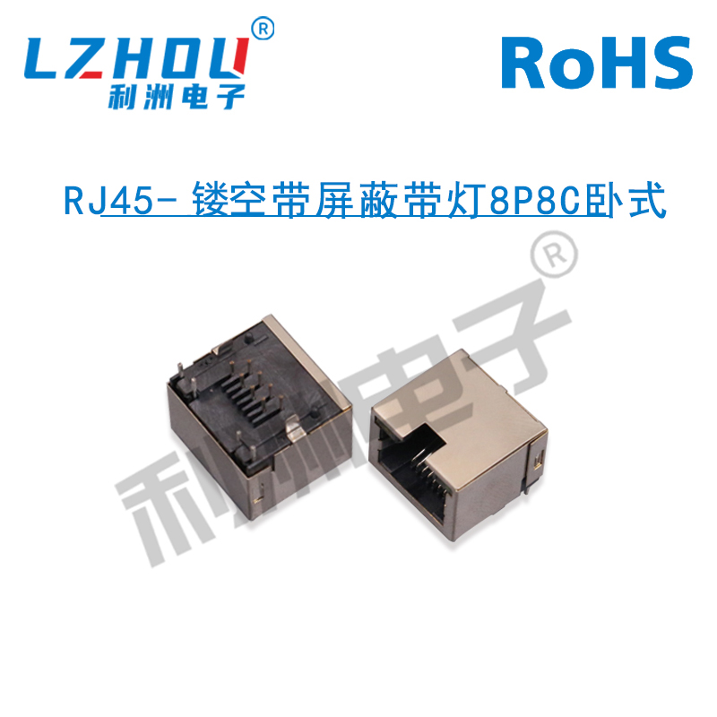 RJ45-带屏蔽带灯8P8C镂空卧式